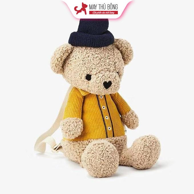 Balo Teddy nâu áo vàng xinh cho bé đi học