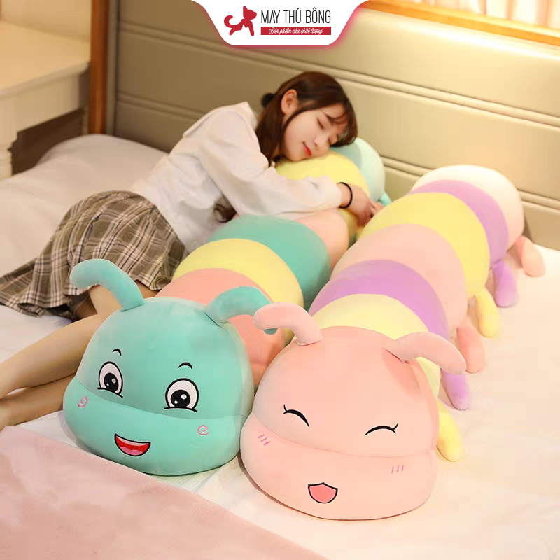 Gối ôm sâu bảy màu nhồi bông đáng yêu